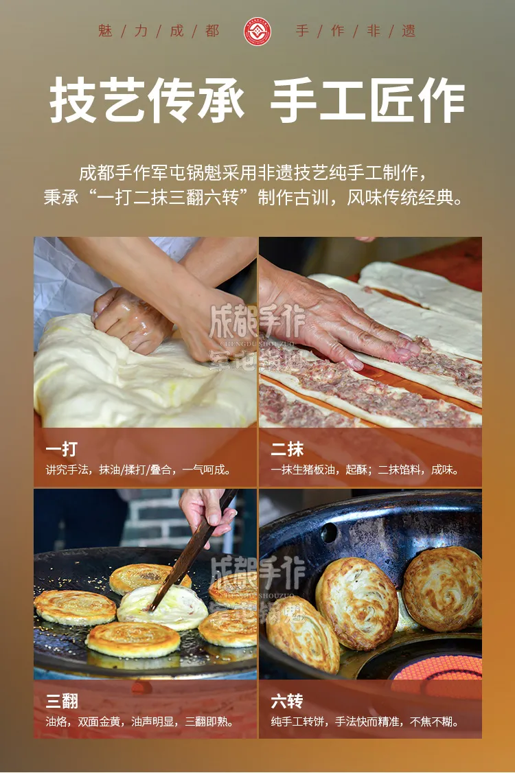 餐饮供应链新品上市,当餐优选近期上新发布了成都手作军屯锅盔,这是老伙记助力成都市非物质文化遗产保护、传承、发展工作,在成都市200余项非遗项目中,挑选出40余家非遗(食品/工艺)进行实地调研后,经过反复多次口感测试,与成都非遗传承人达成深度战略合作,上新的又一款非遗产品。