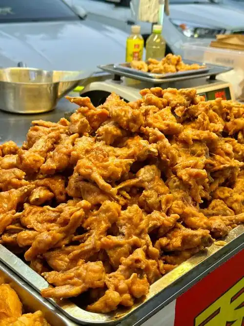 在炸鸡锁骨的时候,裹粉变干了,就会掉下来,需经常过滤清理油里的杂物。