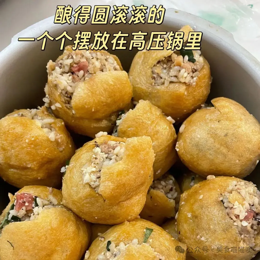 5,酿好的油豆腐,放在高压锅里,上汽后转小火再煮15分钟关火即可