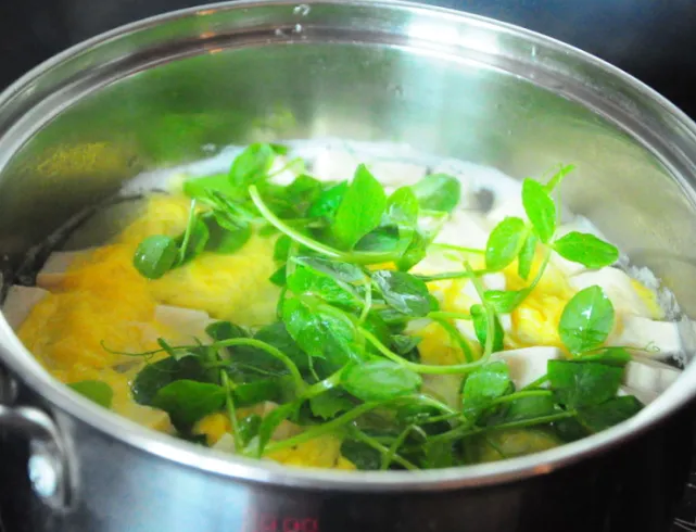 这道豌豆苗鸡蛋汤的做法是不是很简单呢,豌豆苗性清凉,对清除体内积热也有一定的功效。