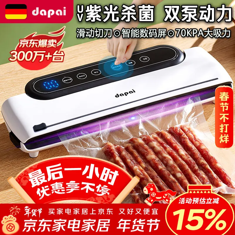 如果你平时喜欢囤肉类、做腊味、买生鲜或者经常备餐,那么真空封口机真的属于“用一次就离不开”的厨房工具。达派这款德国真空封口机主打干湿两用、全自动抽真空,实际用下来最大的感受是:操作简单、密封效果稳定、能明显减少食材浪费。