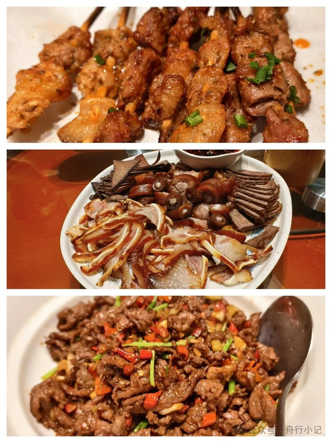 烧烤与配菜:岳阳烧烤是一大特色,这里的烤牛油颗粒大、奶香足,烤牛筋则韧劲十足,都非常推荐。相比之下,炒面等主食就比较普通了。