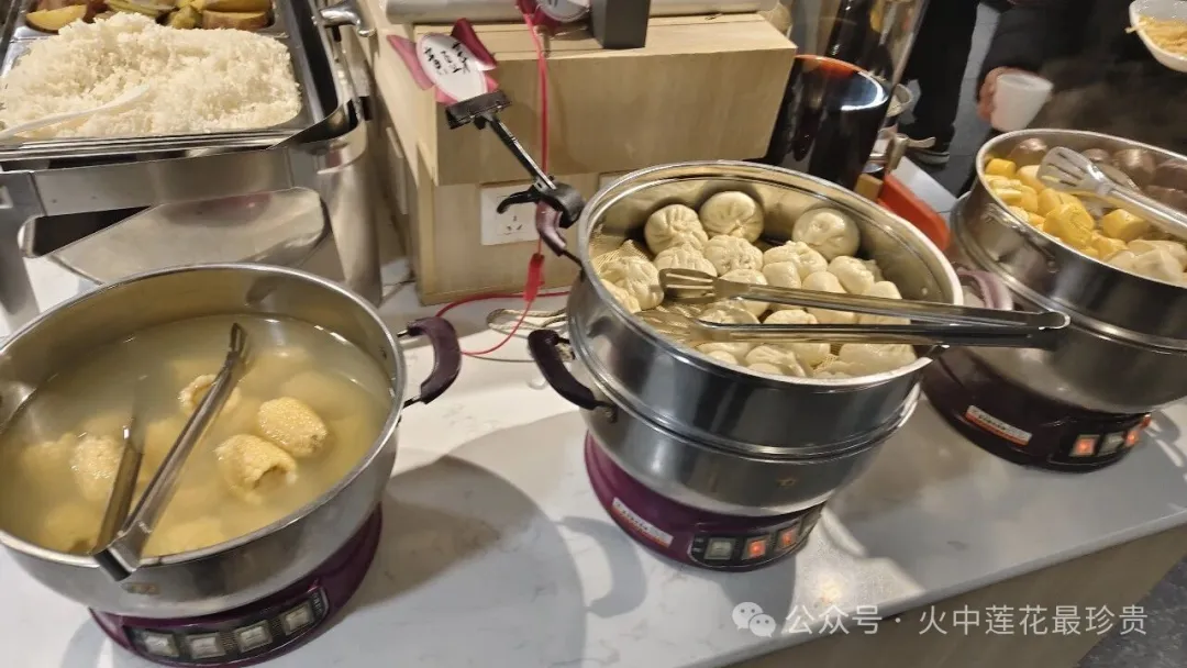 里面的饭菜很丰盛,有各种主食和炒菜,还有各种粥类,还有小孩子爱喝的柠檬水和酸梅汤,可以说是色香味俱全。