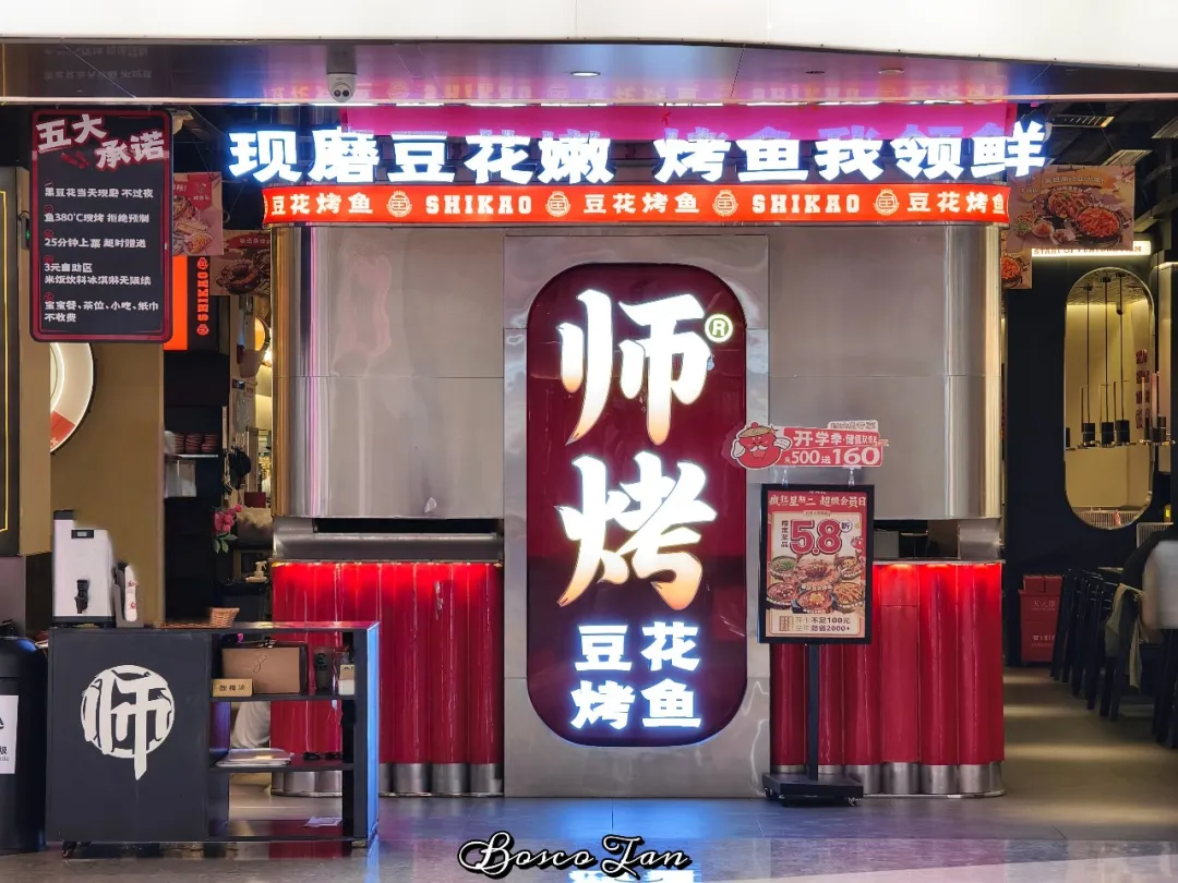 K11 Select吃饭排队人太多,于是就来到它对面这个商场,找到这家连锁的师烤豆花烤鱼,点了一个双人套餐,套餐包括了果香荔枝烤鱼,手工黑豆花无限续,可乐雪碧无限续,白饭任装,雪糕任吃,还有四款餐前小吃。