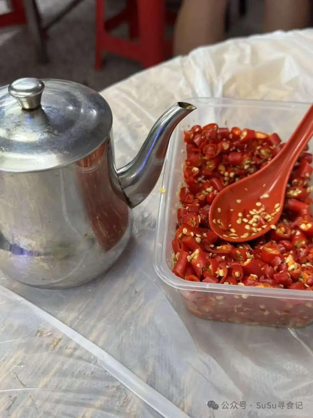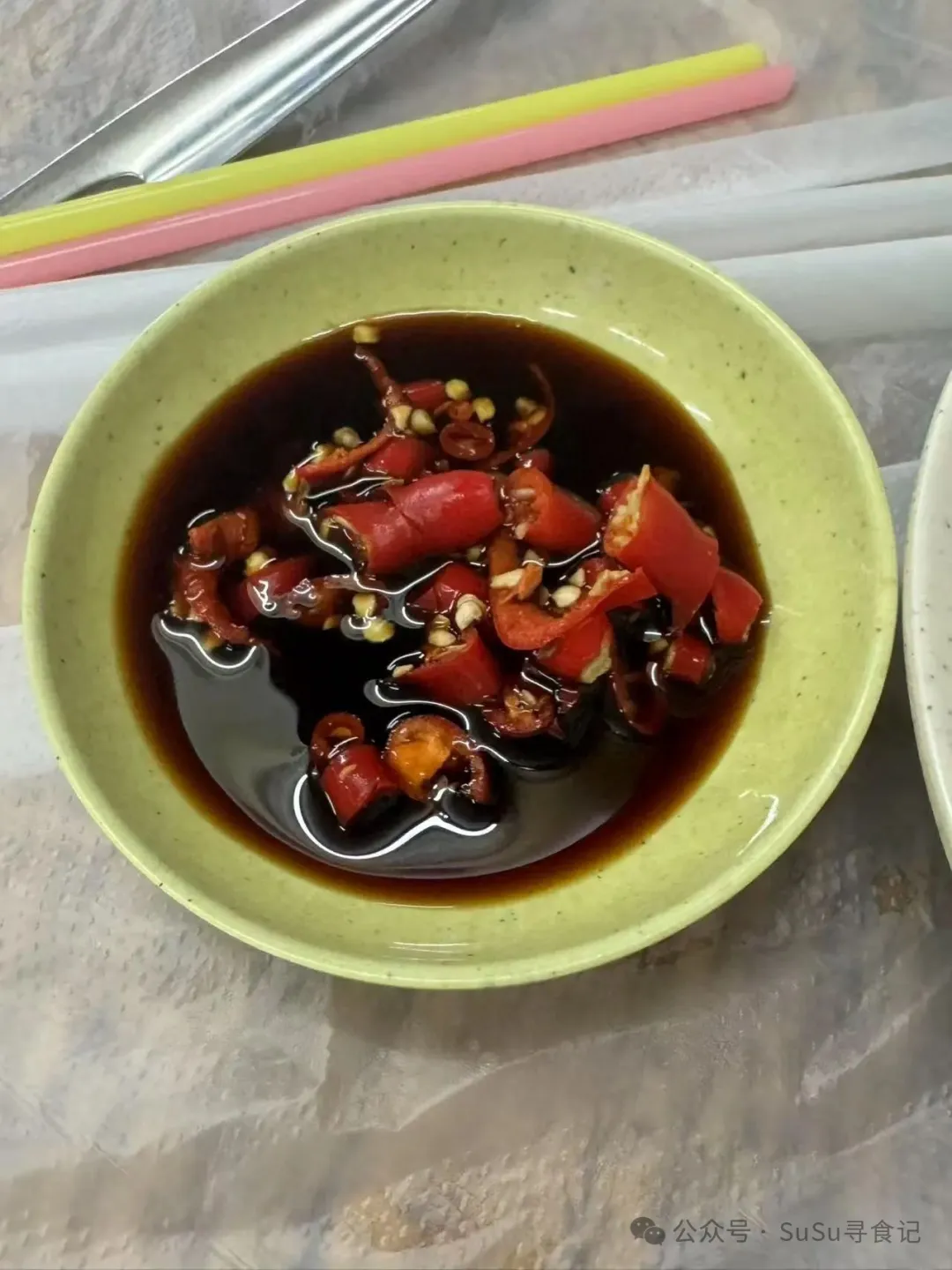 招牌的豬骨煲基本上是桌桌必點,所以在上菜之前,服務生就會送上來醬油和小米辣。