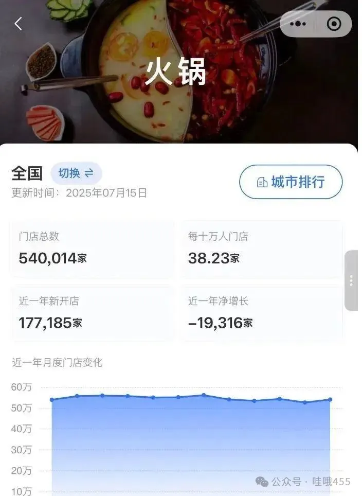 但火锅江湖早已血流成河。窄门餐眼数据触目惊心:去年新开17万家火锅店,净增竟是-1.9万家。长沙米粉店王老板摇头:“现在开火锅店,等于提着钱袋跳火坑。我隔壁三家火锅,倒了两家。”更致命的是价格战:七成重庆火锅挤在50-120元价位,曾经人均150的高端局,如今50元也能烫肥牛。当云贵酸汤锅端上桌,消费者嘀咕:“红油锅底喝三碗水,不如酸汤鱼养胃。”