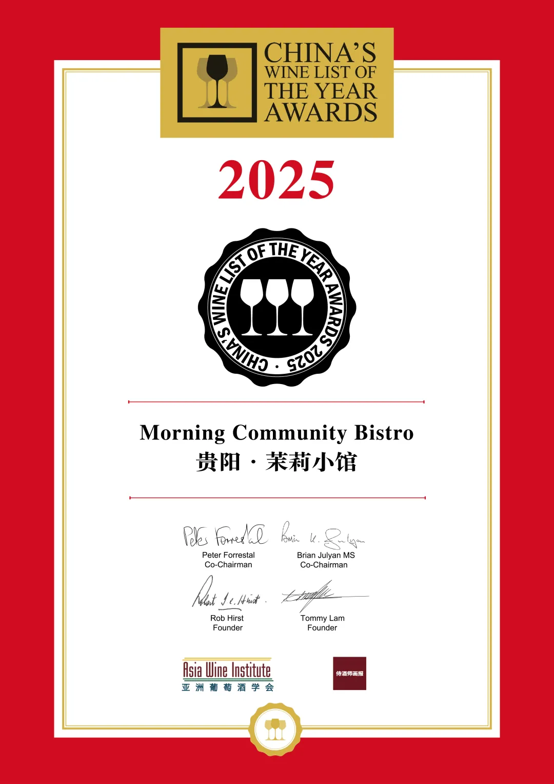 组委会在授奖词中介绍:“别被它的名字欺骗了,茉莉小馆提供诱人的贵州菜到深夜。在贵阳这个蓬勃发展的新区域,采用现代方法,精选来自世界各地的经典葡萄酒。在一共23页的酒单中,有很多值得探索的,其中藏着很多鲜为人知的优质生产商。出色的餐饮定位展示了对贵州菜肴酸辣风味搭配的精致理解。”