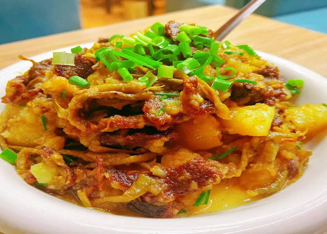 家常餐桌上,烩土豆是内蒙古人家的“下饭神器”,土豆切滚刀块,与猪肉片、胡萝卜、豆角一同下锅慢炖,裹着酱汁的土豆块配米饭,总能让人食欲大开。孜然土豆片外脆里嫩、酸辣土豆丝爽利开胃,都是快手又地道的风味。