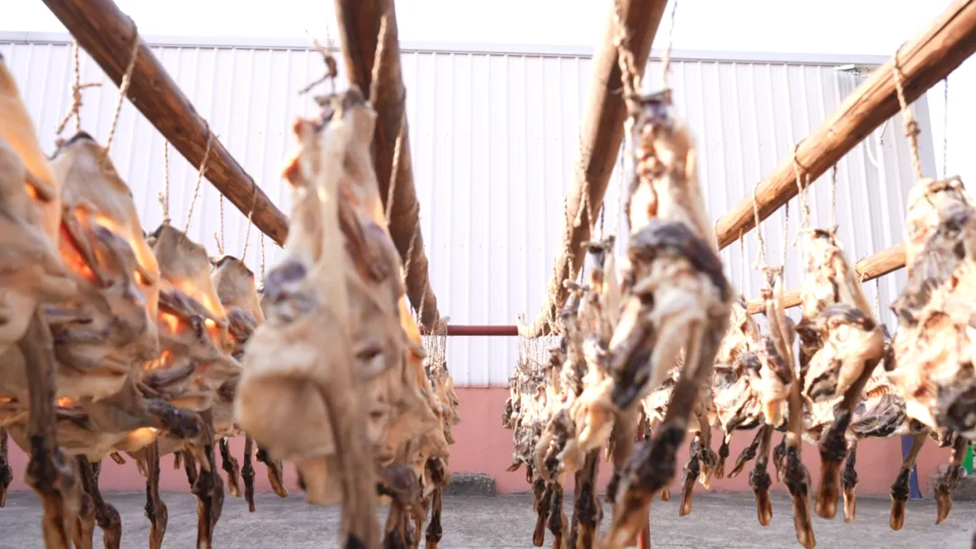最考验耐心的环节,是板鸭的晒制。在北风和冬日暖阳的共同作用下,鸭肉水分缓缓蒸发,表皮逐渐呈现出诱人的琥珀色,泛着油润的光泽。这需要至少7个晴日。