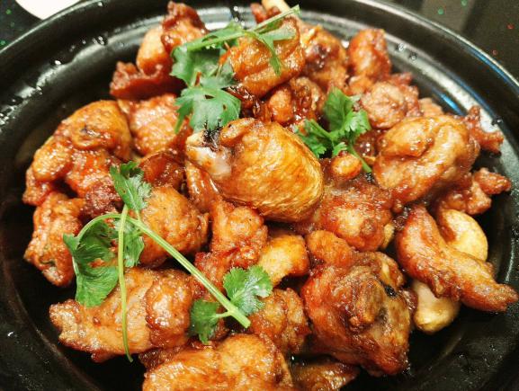 宁都三杯鸡:宁都 “三杯鸡” 是地道的客家味道,以肉质鲜嫩、原汁原味、浓香诱人、味道醇厚而闻名。烹制时,先把宰杀洗净的鸡斩成小块,置于砂钵中,不放汤水,只配一杯米酒、一杯香油、一杯酱油,先用旺火烧开,再用文火烩,等鸡肉收红,卤稠汁浓即可。