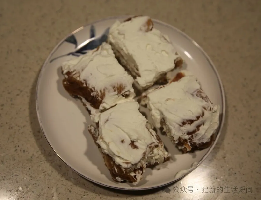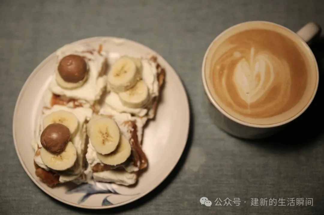 等待奶油结块最好了,不过我等不及了,做好咖啡就开始吃了。