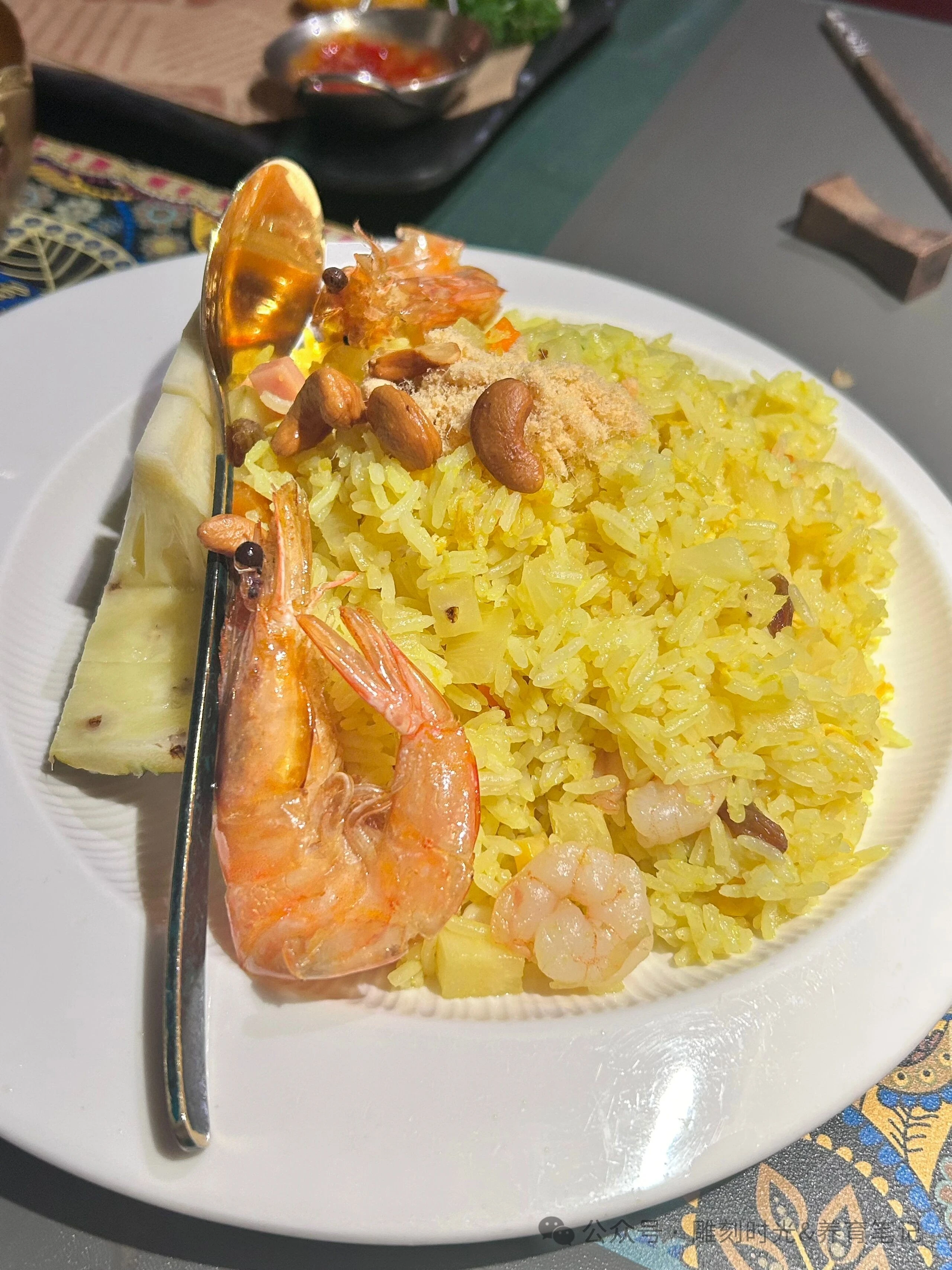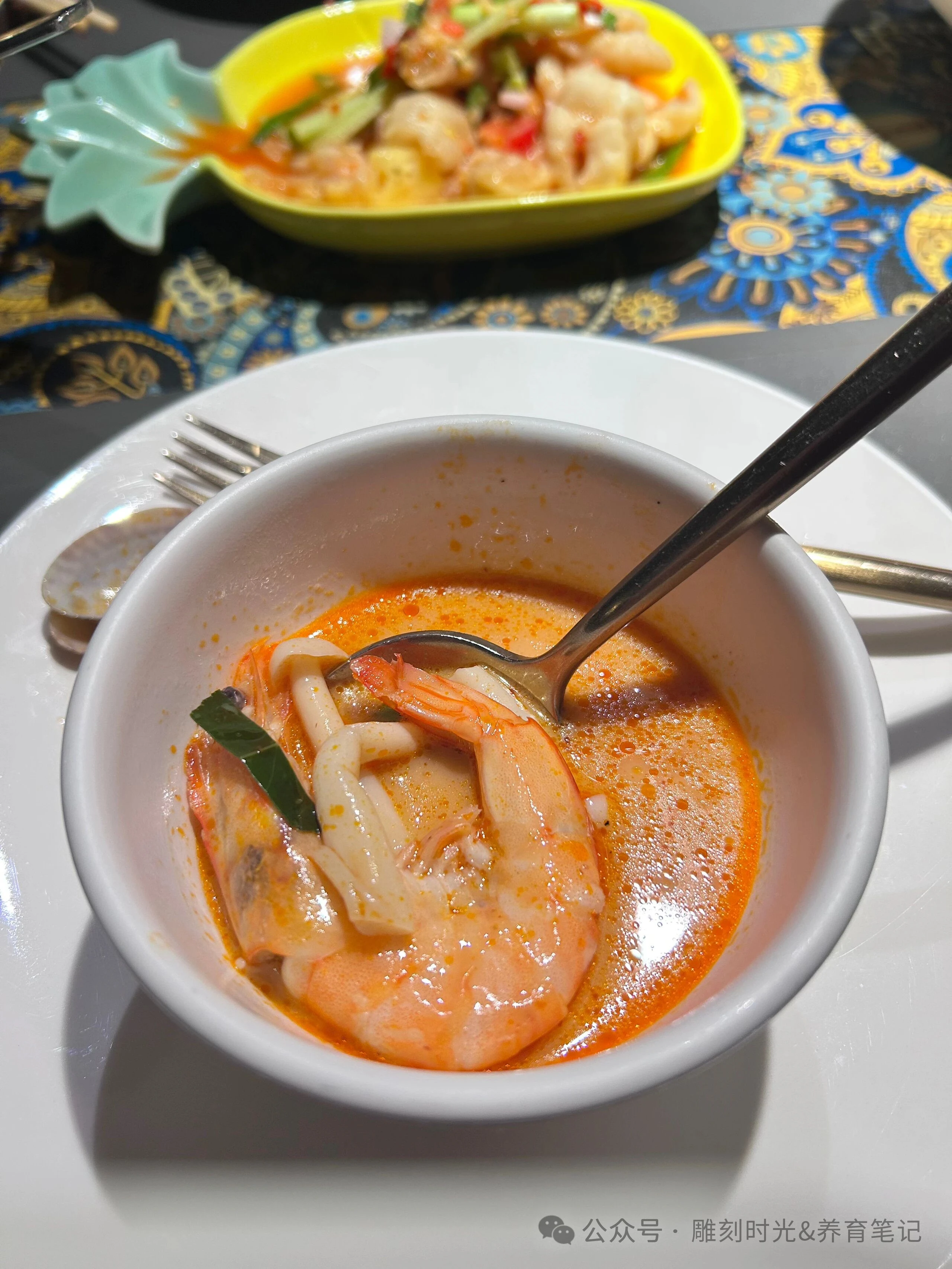 孩子说了,出门吃饭不要算性价比,服务和环境、体验第一位。冬阴功汤好喝,#甲米东南亚餐厅 #灯塔景区美食打卡 #东南亚创意餐饮 #美食与美景兼得 热乎的,酸酸的,喝完感冒感觉几乎没有了。还有凤梨炒饭也好吃,只要咖喱鸡面包不喜欢。只吃了三分之一,其他的都光盘了。
