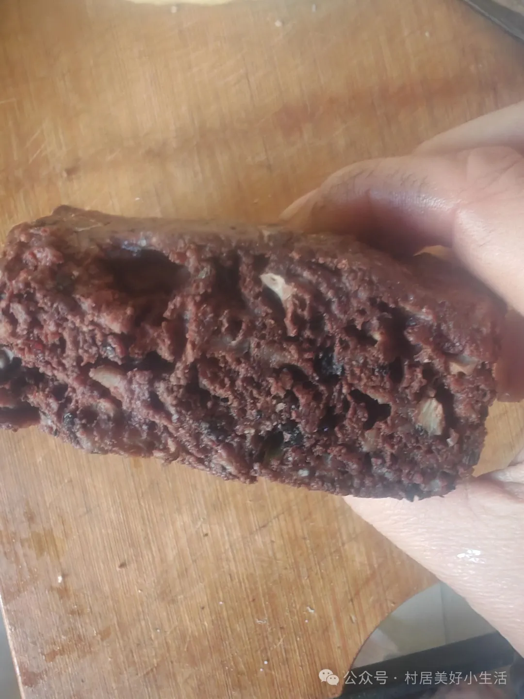 刚出锅的猪血糕,切成块直接啃!口感松软,猪血的鲜、土豆的甜,混着调料的香,在嘴里直接炸开,这才是家常的味道!
