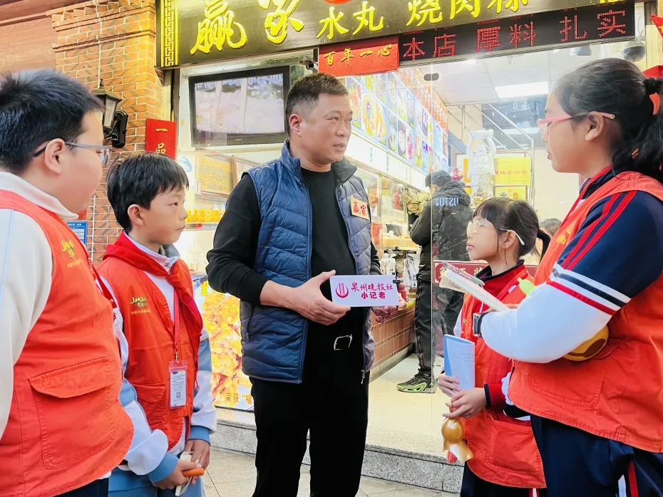 “游客最喜欢的泉州美食是什么?”“泉州美食在哪些方面需要优化体验?”“老字号如何传承创新?”当天,小记者们分成两支小分队走进西街与中山路,倾听商户、游客与市民对“世界美食之都”建设发展的真实心声。