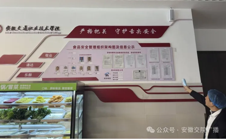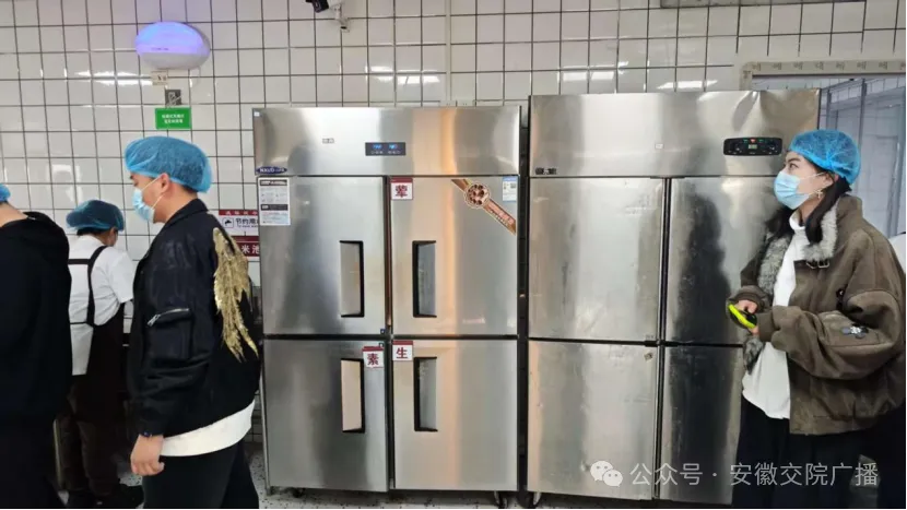 随后,师生代表分批次进入后厨参观。大家依次走过食材存储区、清洗区、加工区、烹饪区及餐具消毒区,实地了解食品从原料到成品的完整流程。食堂工作人员现场讲解食品检验、分类储存、生熟分区、卫生保洁等管理细节,让大家对食堂的规范化运作有了更直观的认识。