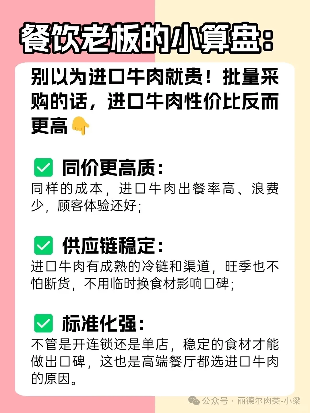 ✅ 供应链稳定:进口牛肉有成熟的冷链和渠道,旺季也不怕断货,不用临时换食材影响口碑;
