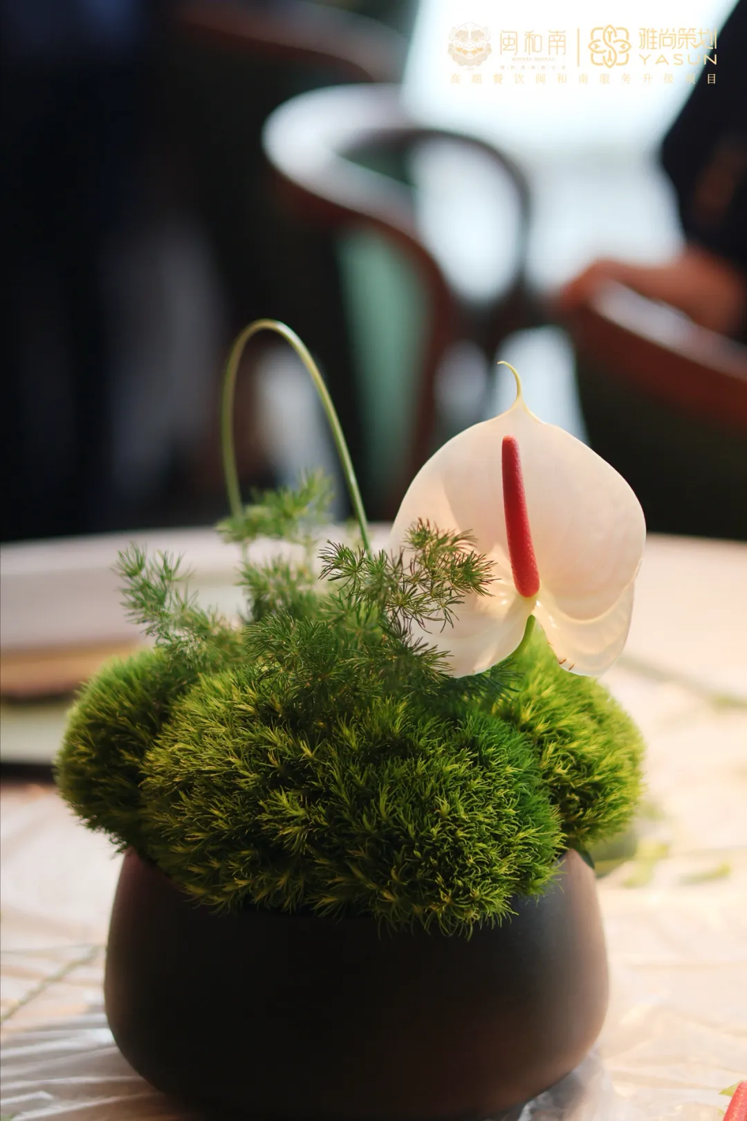 色彩协调、造型简约的插花的艺术可与菜品形成视觉互补,浅色花艺能凸显菜品的丰富色泽,低矮造型则不会遮挡顾客交流视线,让“秀色可餐”从味觉延伸至视觉。