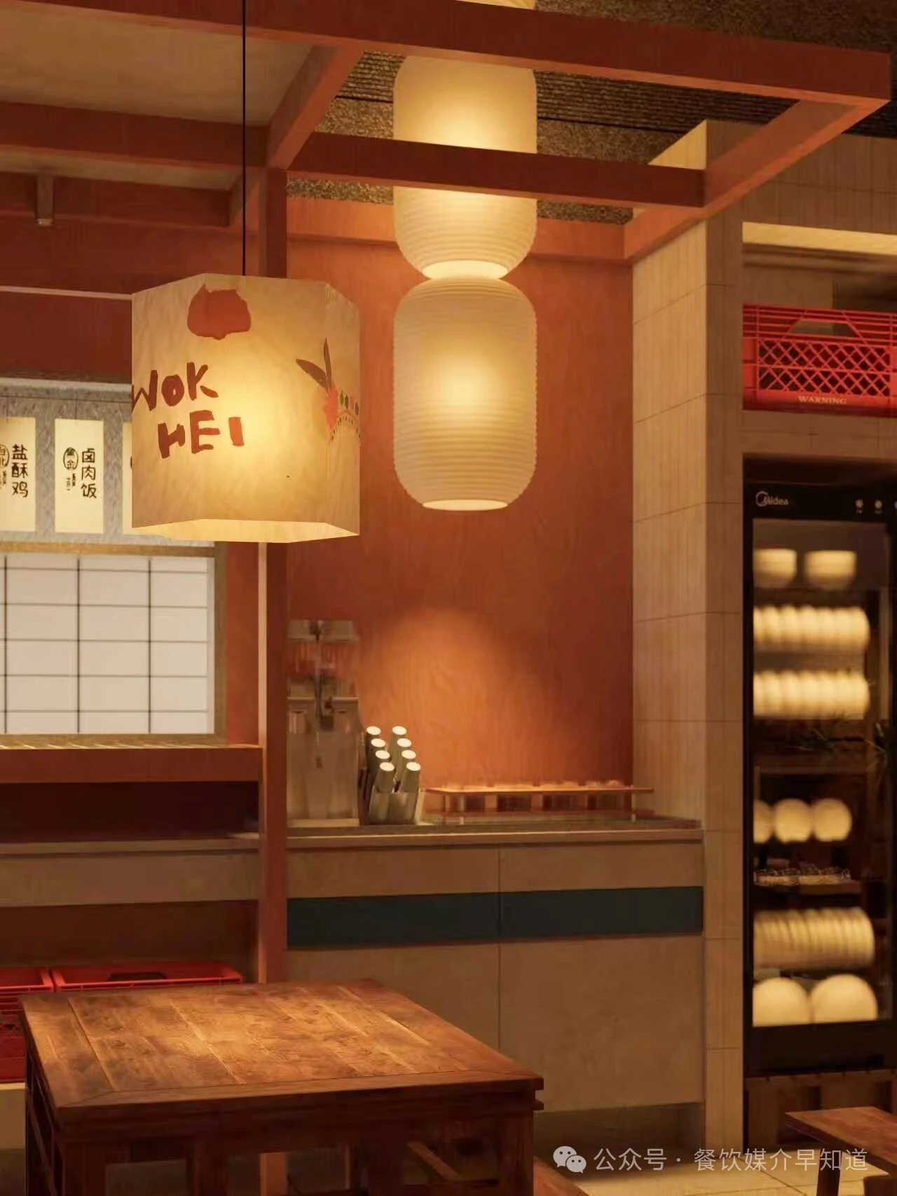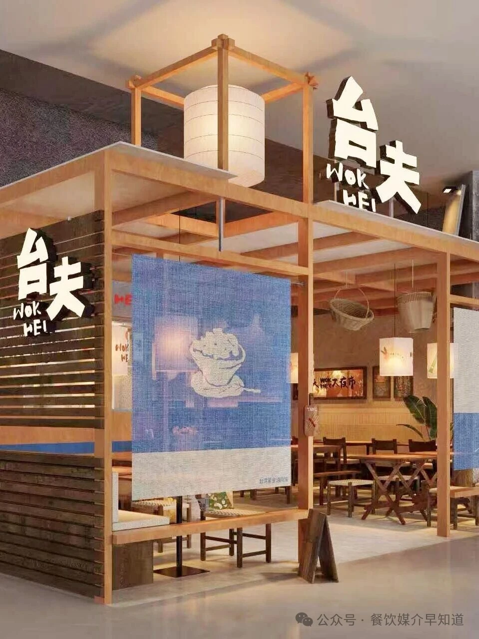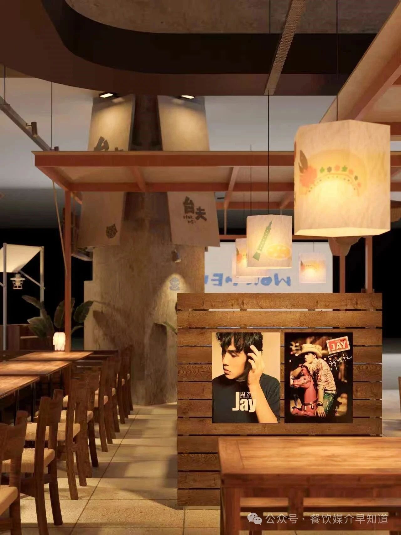 从台湾街头与食堂中提炼符号,进行美学转译。粗糙的墙面、复古花砖、手写菜名牌(蚵仔煎、卤肉饭、盐酥鸡)与木质桌椅,共同搭建起记忆的基底。周杰伦海报的巧妙置入,瞬间锚定了时代的共同情感,将怀旧从“泛泛的过去”精确到一代人的青春记忆。红色塑料筐、竹篮、麻袋等市井容器被提升为装饰元素,诚实且富有美感地陈列着食材与生活痕迹。