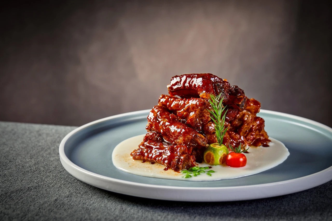 米浆黑蒜乌梅焗黑毛猪仔排