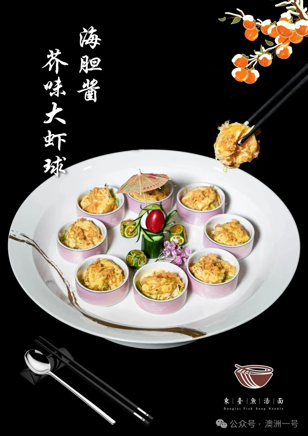 鲜掉眉毛的海鲜盛宴,海胆酱芥味大虾球,硕大的虾球,肉质紧实,特制的海胆酱,带着淡淡的芥末味。大虾的鲜甜,与海胆酱的浓郁与芥末的辛辣在口中碰撞,先是浓烈,后是回甘,一口沦陷。