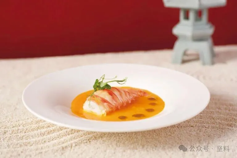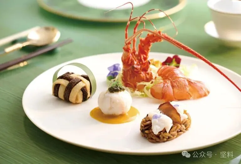 以金沙花雕本灣乳龍蝦白玉為例,挑選本灣乳龍蝦,貪其肉質甜嫩、鮮香滑溜,李師傅灼熟龍蝦後拆肉,佐以鹹蛋黃及蛋白炮製而成的醬汁,鹹鮮不膩。至於濃湯欖菜遼參伴千金菜,把名貴的遼參配以廣東欖菜及四川千金菜也就是萵筍,最後用心擺盤增加視覺效果,同時滿足食客多重感官享受。