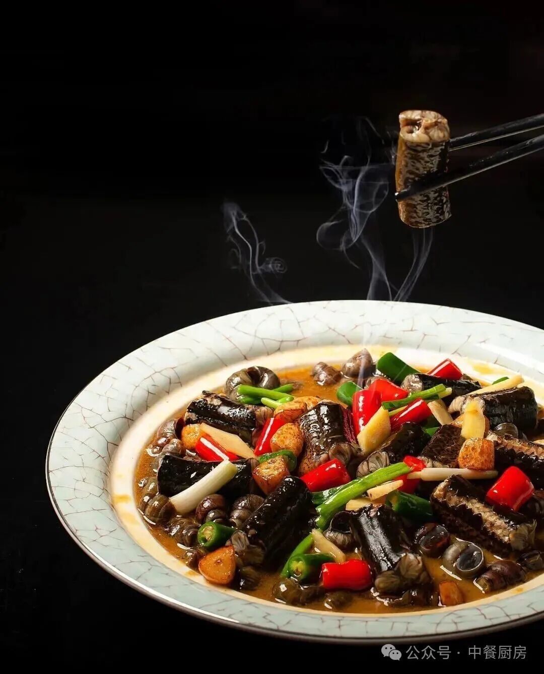 3.锅入豆油烧热,下葱,姜爆香,放主料,盐煎至后入料酒和调味料,高汤150克,大火烧开1分钟,小火10分钟收汁装盘即可。