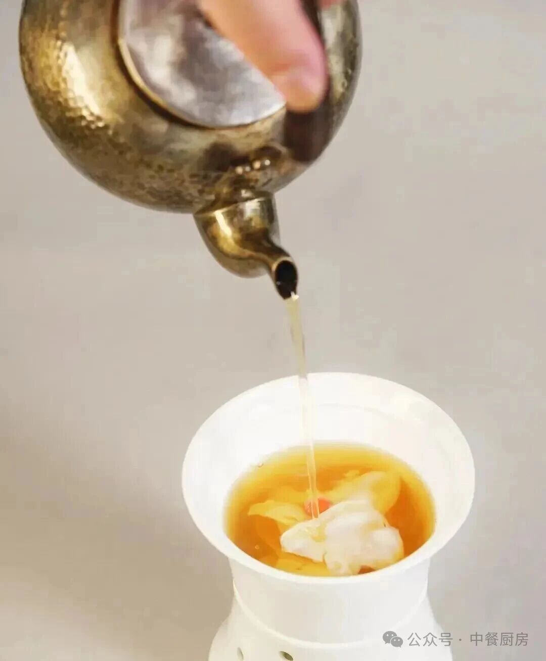 8.象拔蚌煮至变色后,加入适量盐调味,装入炖盅即可。