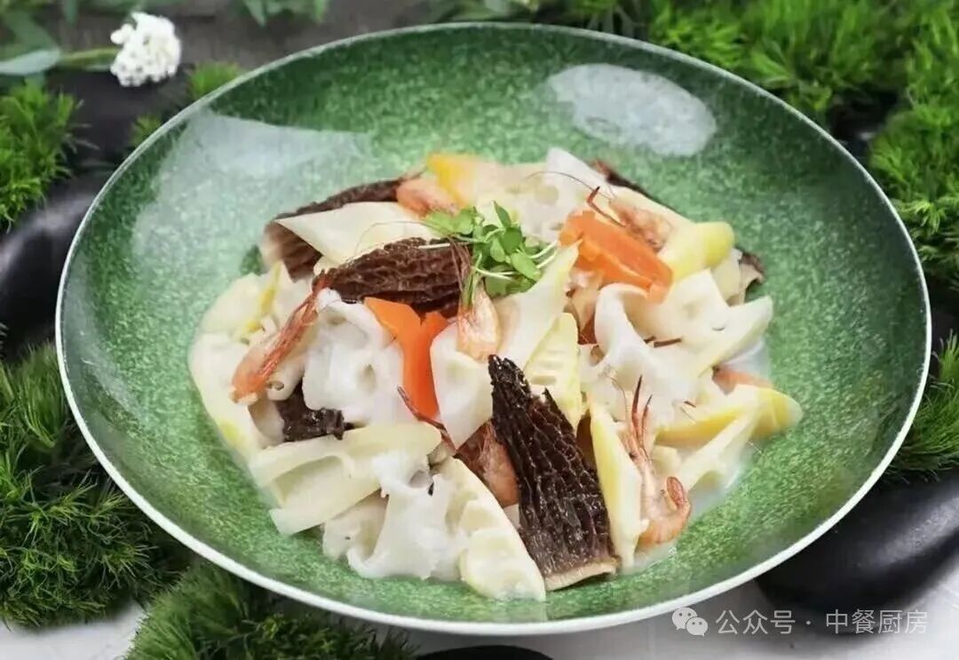 鲜笋羊肚菌烩河虾