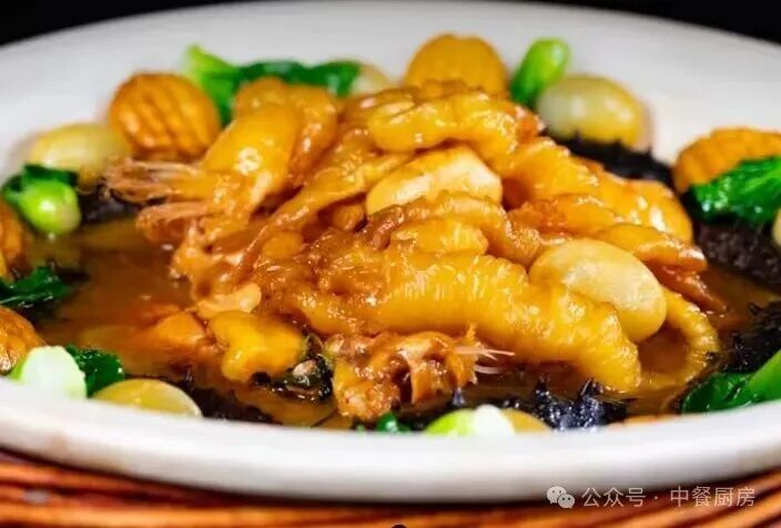 1 、鱼煮熟切成3-4厘米的段,鲍鱼去壳75-80C的水泡制20分钟并寄上花刀,鸽蛋煮熟去壳,海参焯水去内脏