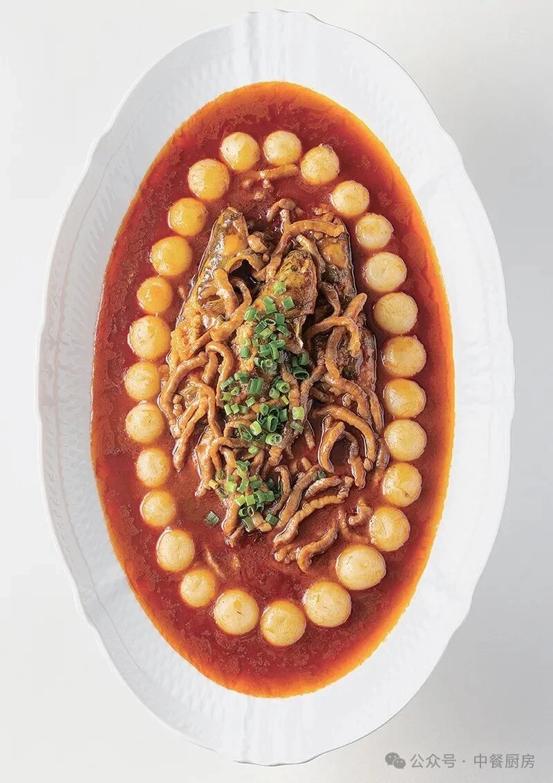 2.热锅冷油,下入姜、葱、大蒜、花椒、豆瓣酱等炒香,加入鲜汤,下入炸过的仔鲶烧制,放入胡椒粉、味精、白糖、醋等调味,捞出摆盘。