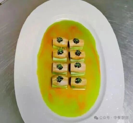 2、目鱼蛋酱汁比例:目鱼蛋3斤,自制高汤1000克,海天金标生抽100克,伊利家红烧酱油100克,味达美冰糖老抽60克,蜂蜜160克,李锦记海鲜酱50克,李锦记叉烧酱50克,家乐干锅酱30克,棉白糖210克,红曲粉15克,家乐鸡精、莲花味精、鲜味宝各20克,草果2个,香叶5克,八角5克,白芷10克,白扣5克,干辣椒15克,幺麻子红油55克,蔬菜油360蔬菜油熬制(色拉油、芹菜、香菜、胡萝卜),出品装盘点缀花草即可。