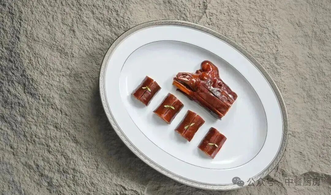 3. 把之前调好的卤水准备好,将狮头鹅的头颈部分用冷水冲洗干净血水,这一步可以进一步去除表面的杂质和血污。接着将鹅头颈放入锅中,加入足量的水进行焯水,水开后煮一会儿,待表面的浮沫充分煮出后捞出,这样可以有效去除腥味。把焯好水的狮头鹅头颈放入事先调好的卤水中,用小火卤制40分钟。小火慢卤能让卤水慢慢渗透到鹅肉内部,使其充分吸收卤水的味道。卤制完成后,让其在卤水中浸泡1小时,这样可以使鹅肉更加入味。浸泡结束后,将鹅头颈捞出,挂在风干箱内吹7小时。风干的过程能使鹅肉的表皮收紧,肉质变得更加紧实有嚼劲,同时也能进一步提升风味。最后,按照个人喜好将鹅头颈改刀装盘,一道美味的潮式老卤狮头鹅就制作完成了。