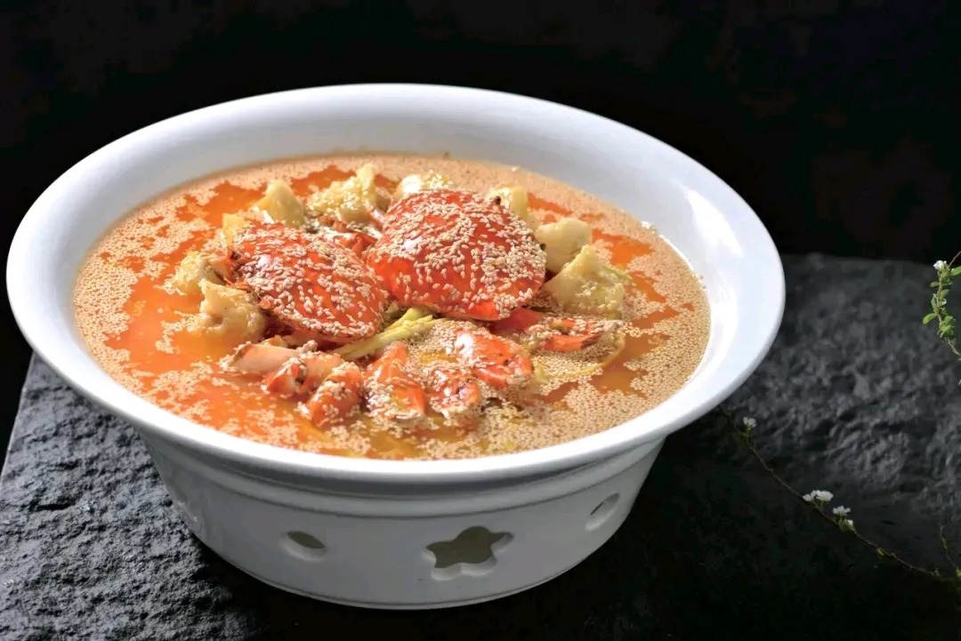 辅料:青豆少许、鸡蛋数个(建议根据蟹的大小和食用人数调整,一般每只蟹可配4-7个鸡蛋的蛋白部分)花雕酒适量(推荐选择品质优良的花雕酒,如十年陈酿),清鸡汤或牛奶适量,盐、鸡粉等调味料少许