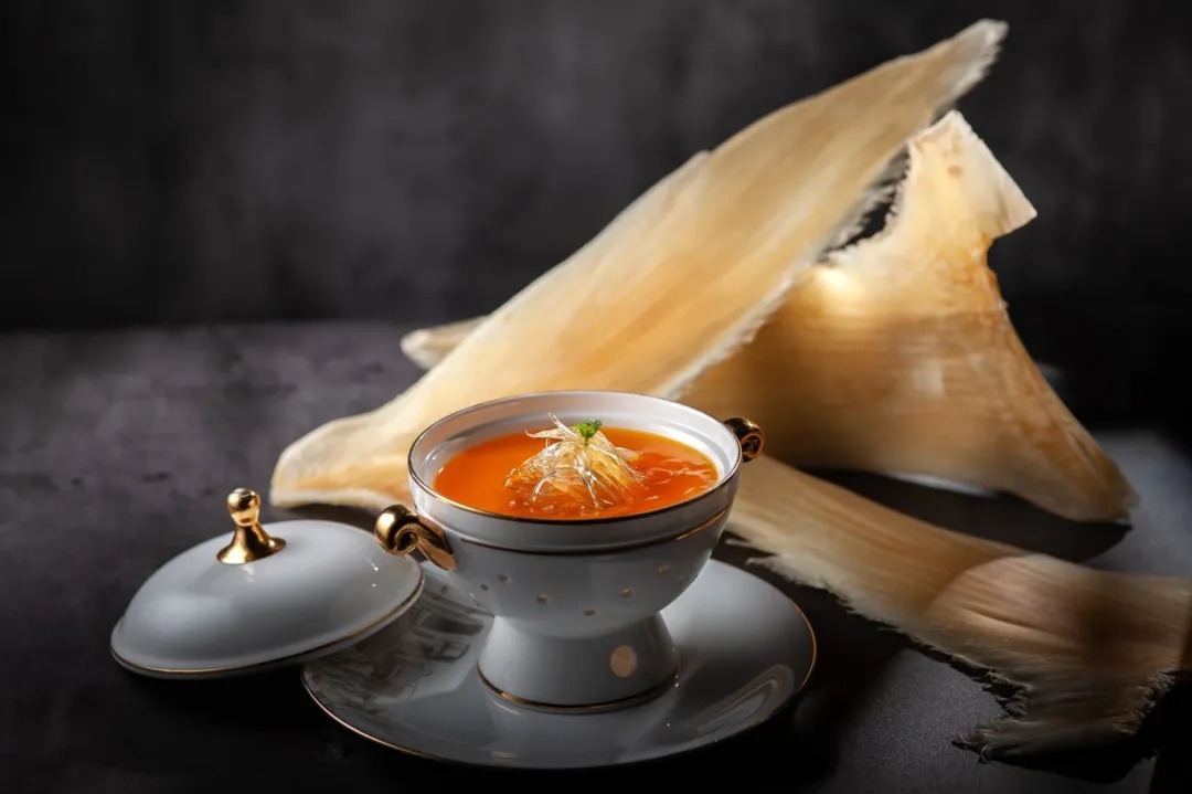 1、鱼翅用姜葱水煨后,倒出备用,调汁用清鸡汤,火腿汁勾兑。盐、味精、糖、鸡饭老抽勾芡。将提前备好的汁倒入碗内,下鱼翅,给薄荷叶点缀,即可。