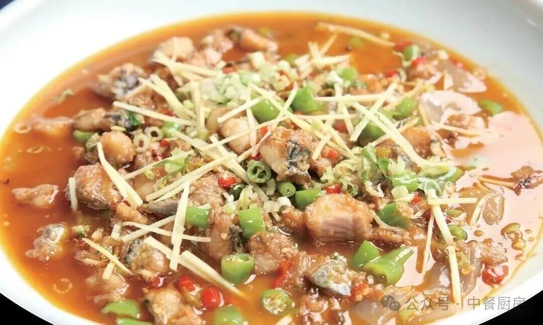1.将江团治净,取净肉切大丁,加盐、味精、鸡精和红苕淀粉抓匀腌味。净锅放油烧热,将鱼肉丁放热油锅里滑熟,倒出来沥油待用。