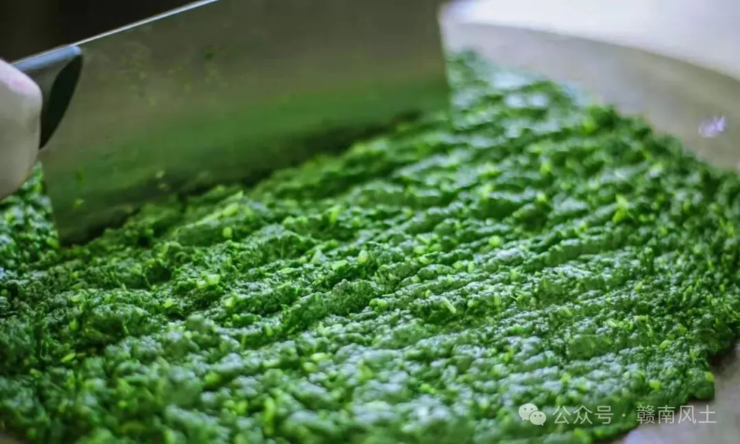 3、将艾叶滤干水,捣成艾泥。