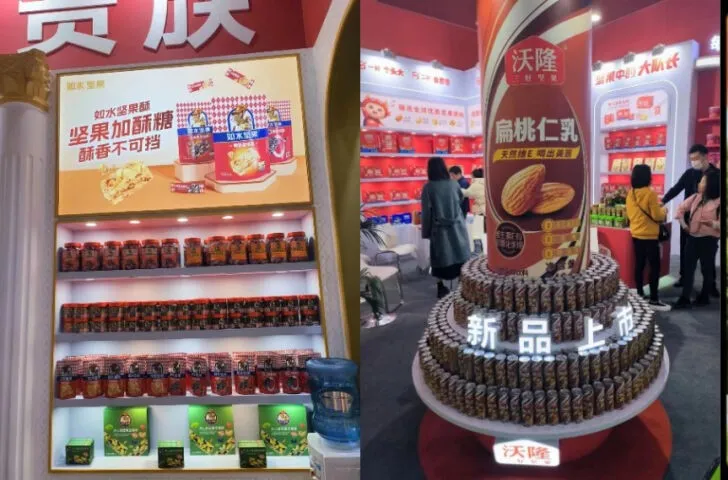 以坚果、红枣为代表的原料型零食的价格受限于原材料,价格相对透明,因此深加工是原料型产品的有效溢价方式。今年的春糖会展会上,以坚果、红枣为代表的原料型零食品牌纷纷将深加工产品摆放在展台C位,试图在同质化的市场中找寻溢价方向。例如,好想你主推枣仁派、红枣芝麻丸;沃隆主推扁桃仁乳;如水主推坚果酥、坚果蛋卷;三只松鼠在此前的糖酒会上主推坚果乳。