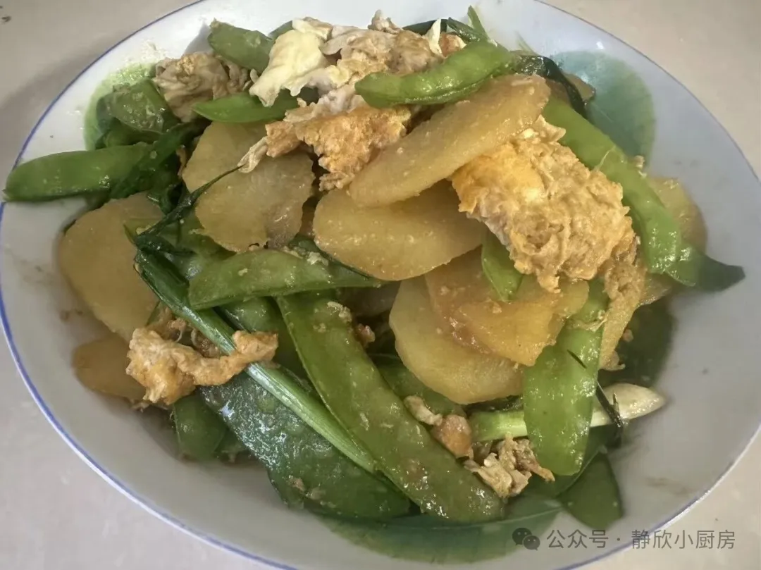 这道土豆荷兰豆炒鸡蛋,没有名贵食材加持,却胜在食材常见、搭配绝妙。简单的翻炒间,锁住的是食材本身的鲜醇,传递的是家宴最质朴的温暖。一碗热气腾腾的米饭,配上这盘鲜香下饭的小炒,就能让一家人的餐桌充满烟火气息,把平凡的日子过得有滋有味。