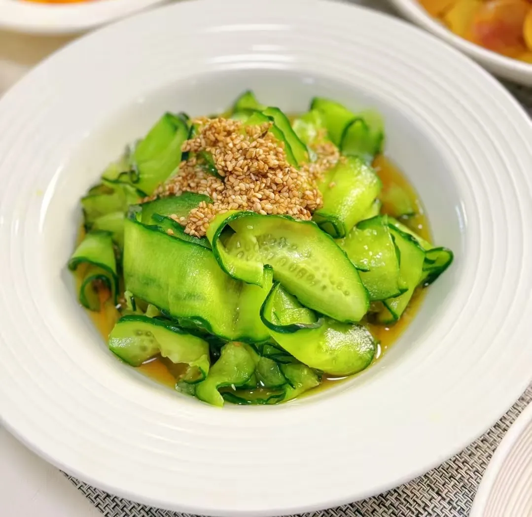 1、把黄瓜刨成薄片,放入容器中加白糖腌制 15 分钟。