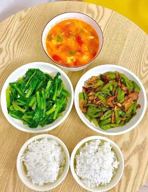 我尝试了一种“两菜度日”的生活:一日三餐,午餐和晚餐,餐餐只备一荤一素,两个菜。