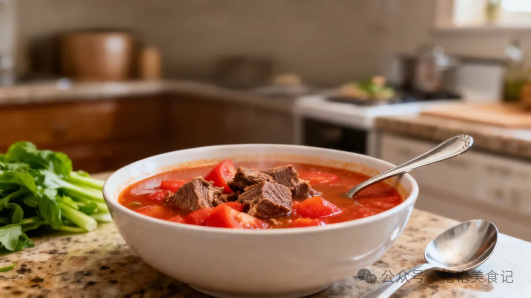 小贴士:番茄选熟透的。炒的时候用铲子把番茄压碎。汤汁会更浓郁,如果赶时间。牛腩可以换成牛肋条。煮 10 分钟就能烂。