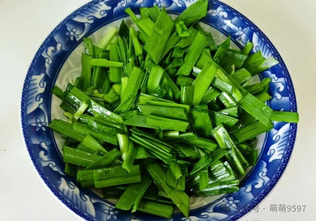 切好的韭菜加点香油拌一下 , 为什么要这样做?因为韭菜最容易出汤 , 一出汤整盘菜就废了 , 用香油裹一层 , 能有效减缓出汤速度 , 这招我用了好多年 , 特别管用!