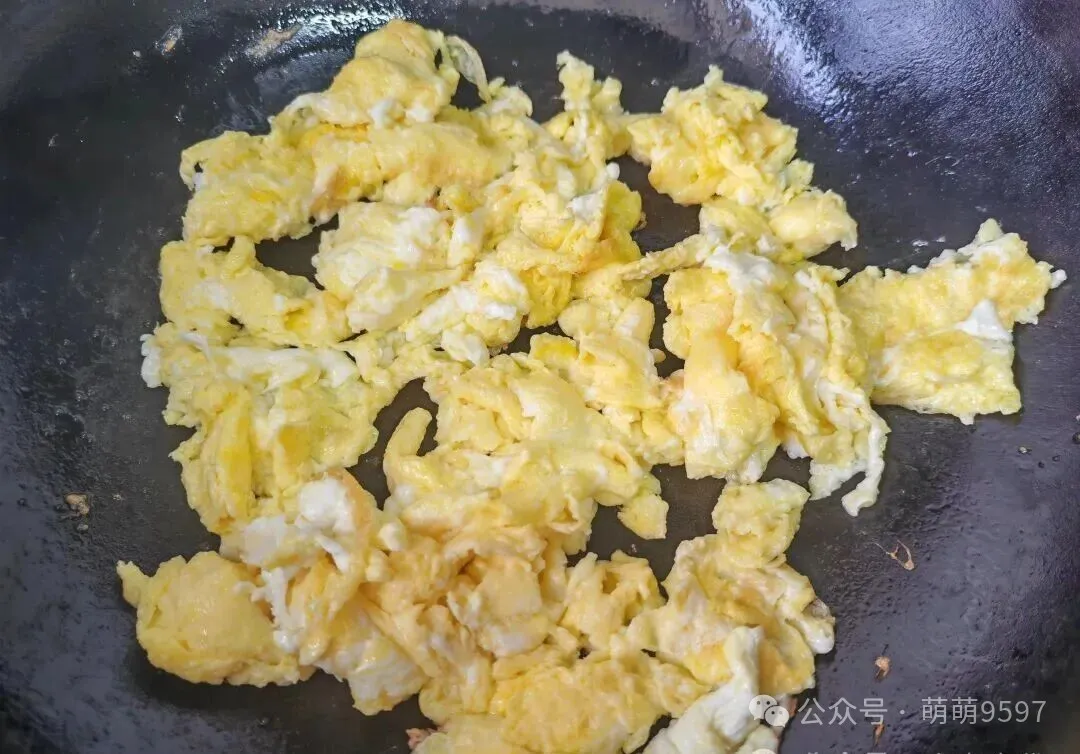 热锅下油 , 油温要高一点 , 鸡蛋液下锅就开始起泡 , 这样炒出来的鸡蛋才嫩 , 等鸡蛋定型了再用铲子搅散 , 炒熟盛起来备用!