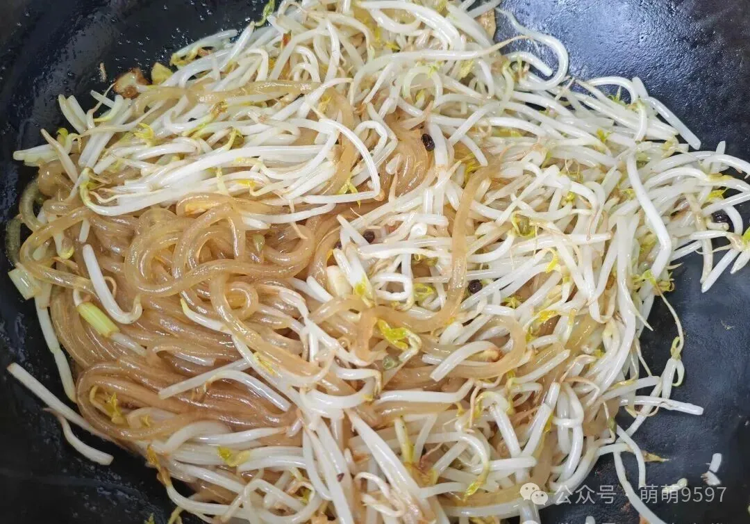 大火快炒 , 把豆芽的水汽炒出来 , 豆芽炒到半熟的时候下粉条 , 继续炒 , 调味的时候记住 , 盐要少 , 味精适量 , 再来点胡椒粉提味 , 炒匀就行!