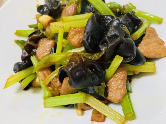 1. 芹菜木耳炒瘦肉——清血管、稳血压