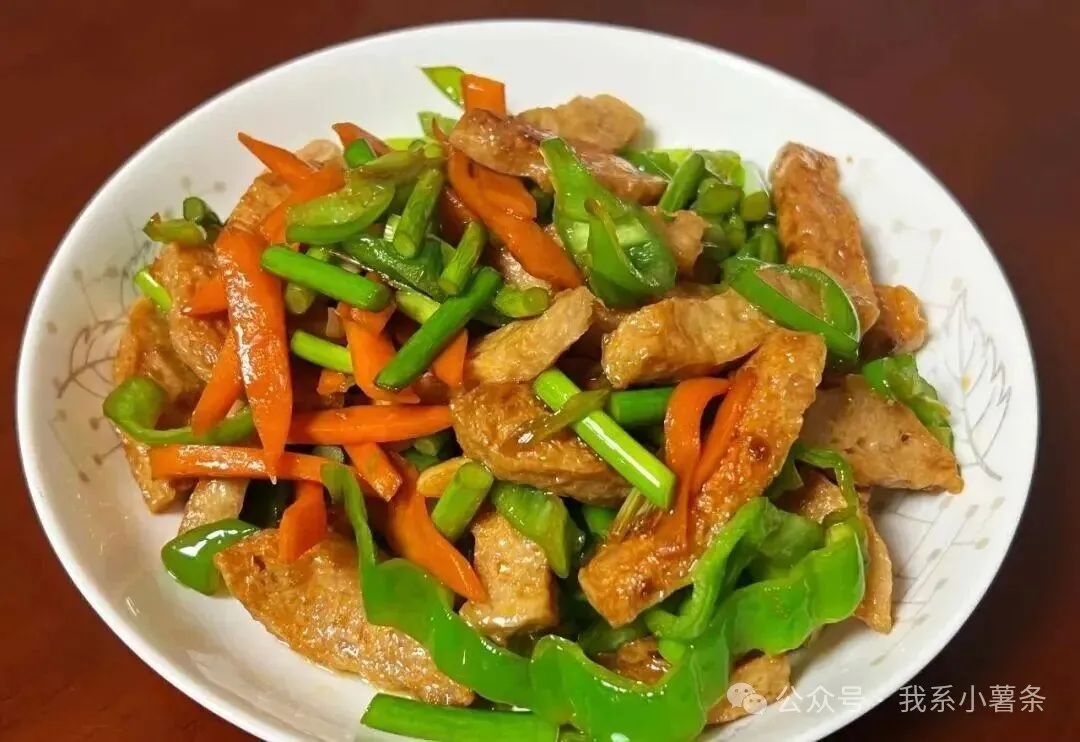- 食材处理:半根肉卷切成粗条,别切太薄,厚实点嚼着才香。青椒、蒜苔和胡萝卜也统一改刀切成差不多长的小段,这样受热均匀。