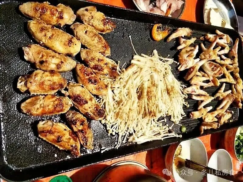 最受小孩欢迎的是那道“烤鸡翅”:鸡翅在烤盘角落慢慢烘烤,撒上少许椒盐,孩子们抢着要“再来一根”!