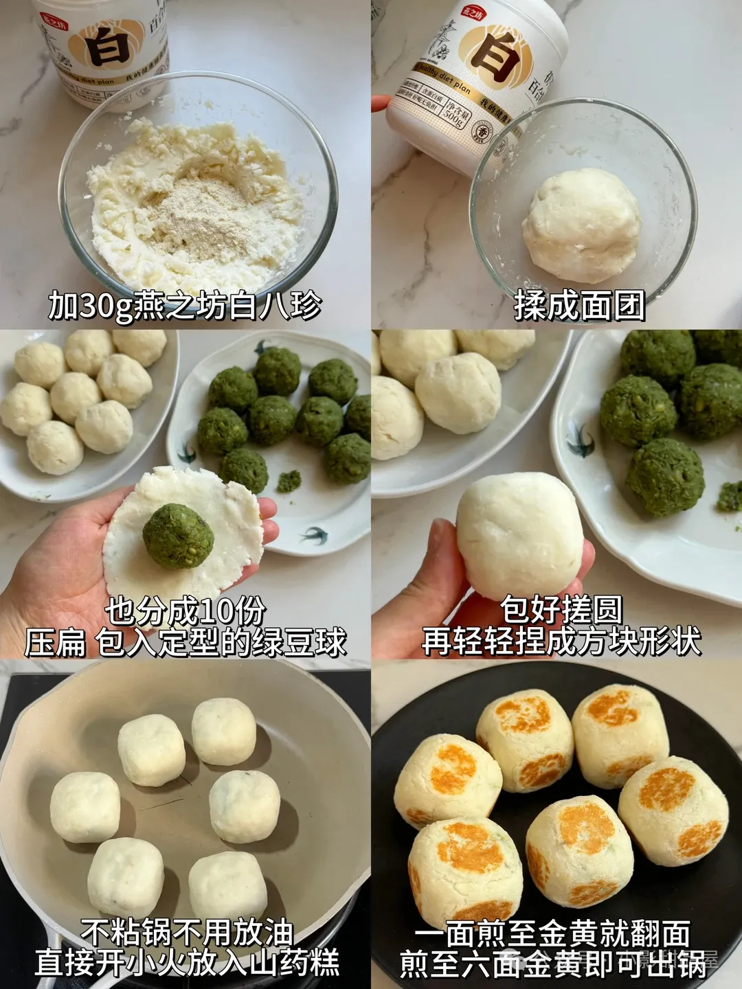 养生姐妹快来跟我学这个山药绿豆糕!用料极其干净,无糖无油无面粉也非常好吃!山药外皮软软糯糯,绿豆沙清香不腻,而且免烤箱,免揉面免发酵,平底锅就能轻松搞定!!