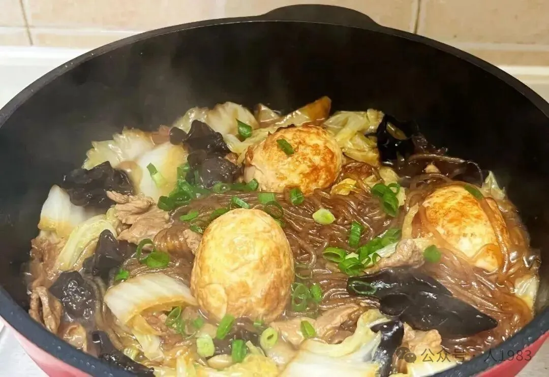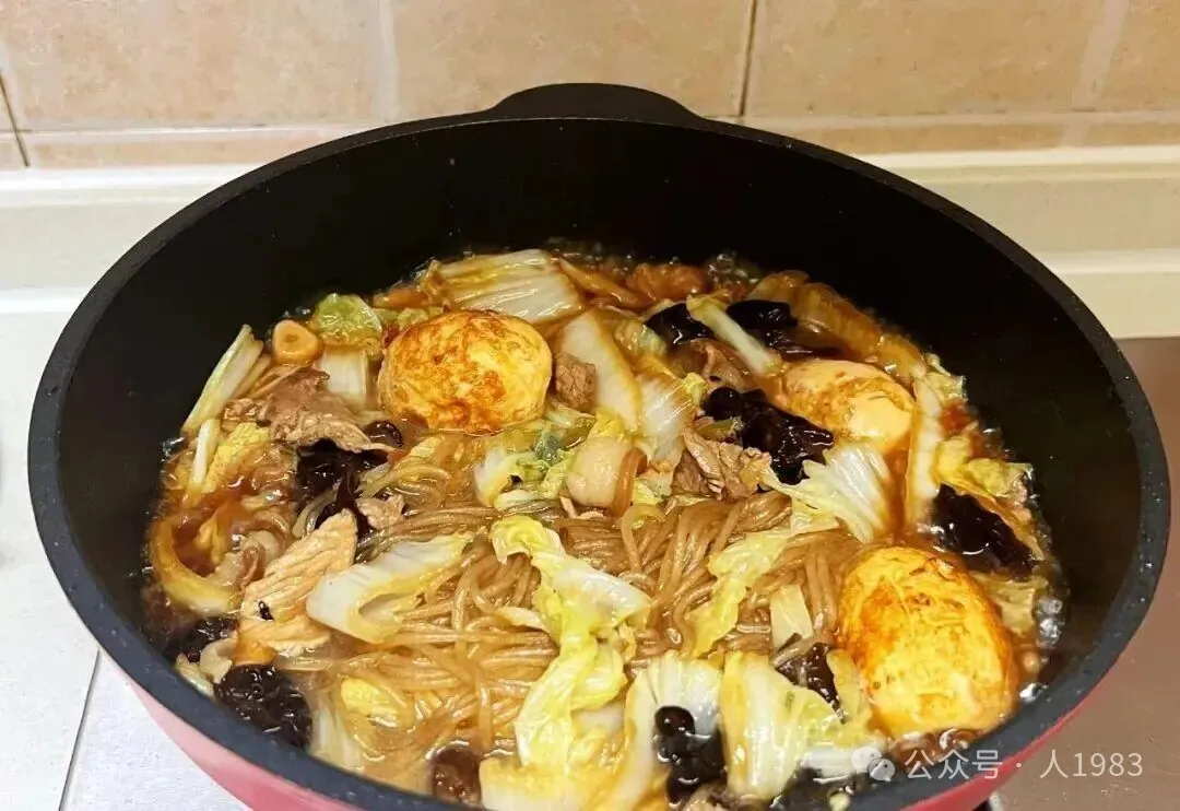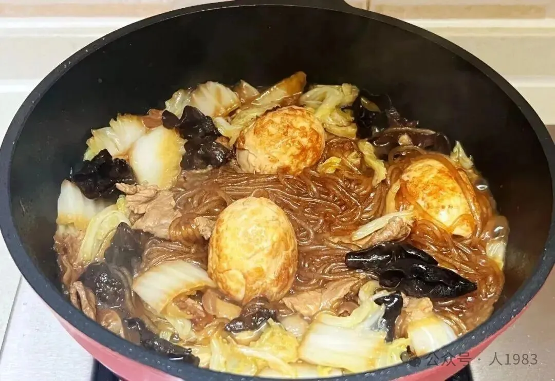 - 等粉条软透、汤汁浓稠时,一锅香喷喷的炖菜就完成啦!