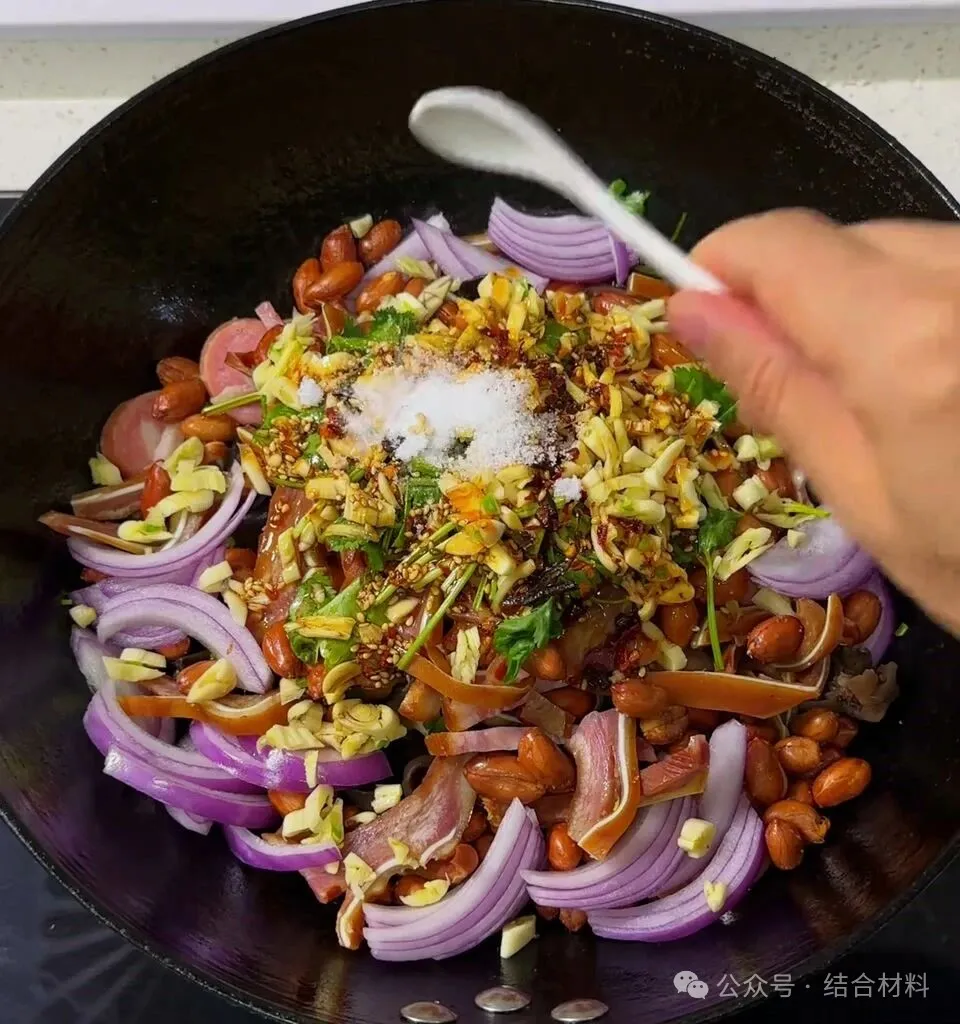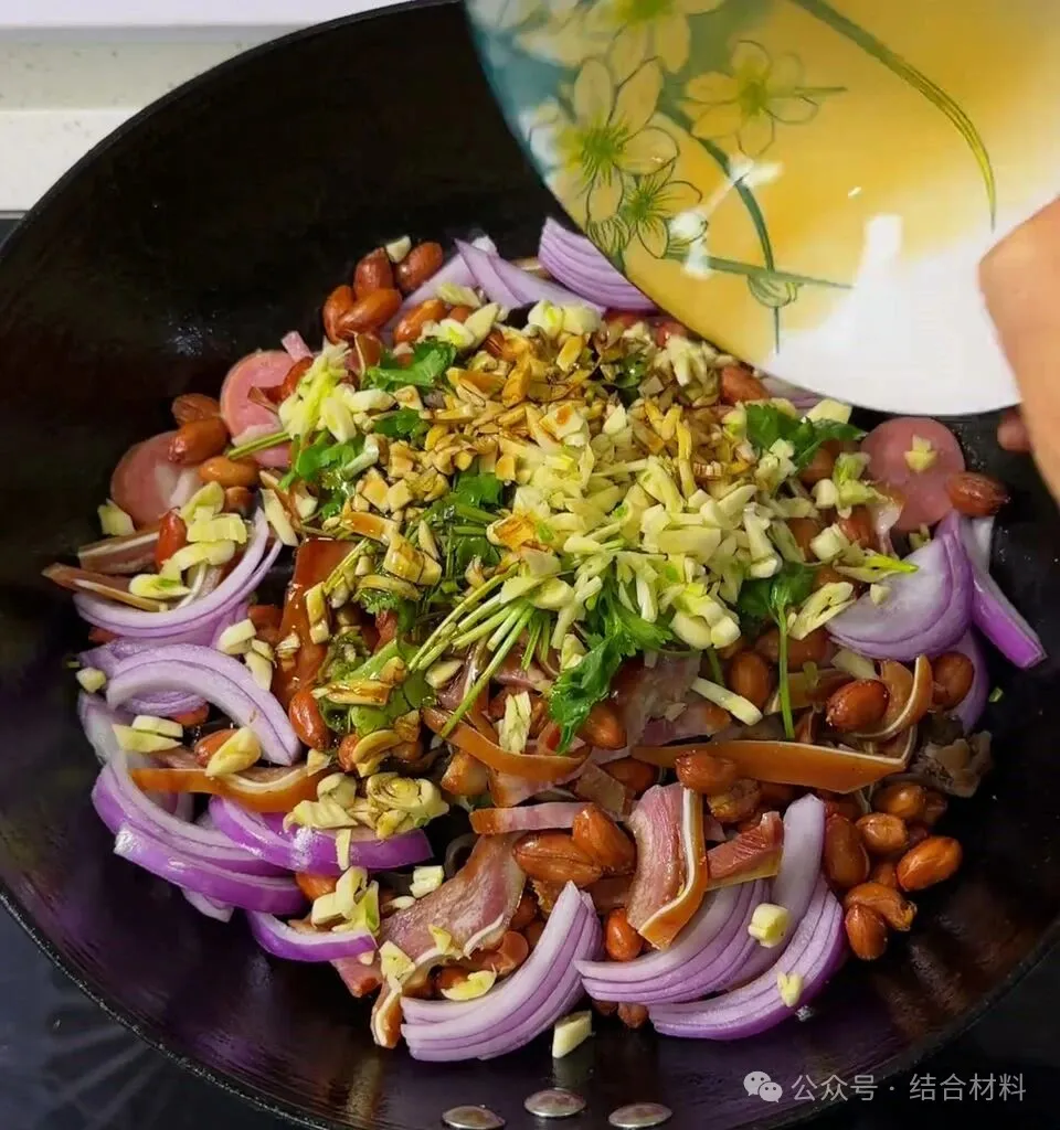 这道.菜的.精髓就是.食材要丰.富,口感层.次才.足。我用的.是拍黄瓜、腐竹、香肠、猪耳朵、花生米、洋葱、香菜,再加点.木耳,8种食材凑.一起,脆的、软的、香的、鲜的.都有了。